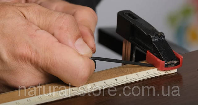 Кембрик Аграріо регулярно перевіряється на розтягування. З одного боку кембрик затискається струбциною на позначці "0" і тягнеться. На фото нижче це показано. Наприклад відрізок 5см нам вдалося дотягнути без розриву до 30см - а це 600%.
